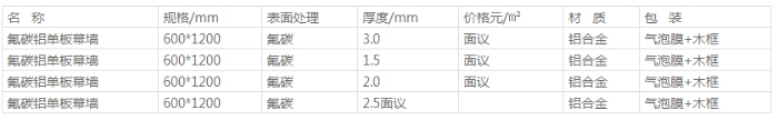 氟碳鋁單板幕墻規(guī)格參數(shù)表: