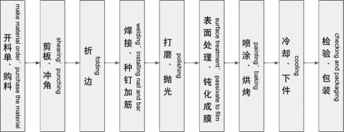 拼密焊接——→板背種釘——→焊位打磨——→裝加強(qiáng)筋——→精細(xì)拋光